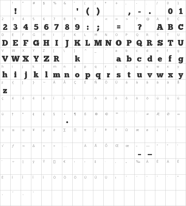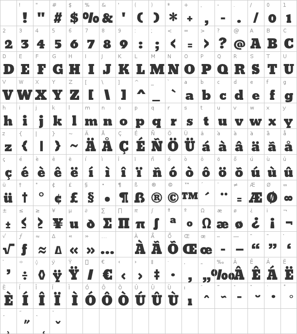 This is the character map of the popular free font ChunkFive.