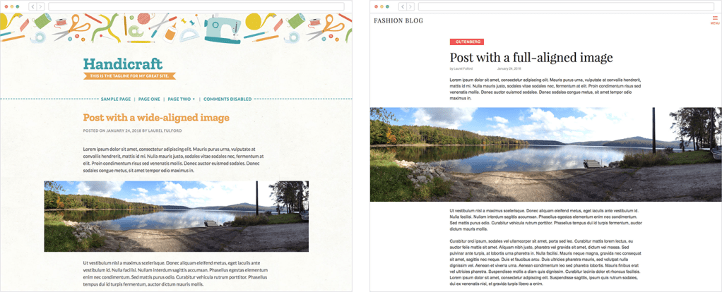 On the flip side, themes are fully responsible for figuring out how the “wide” and “full” alignment styles should be handled, if they support them. This makes sense, since support is optional, and exactly how they should look can vary depending on a theme’s individual style.