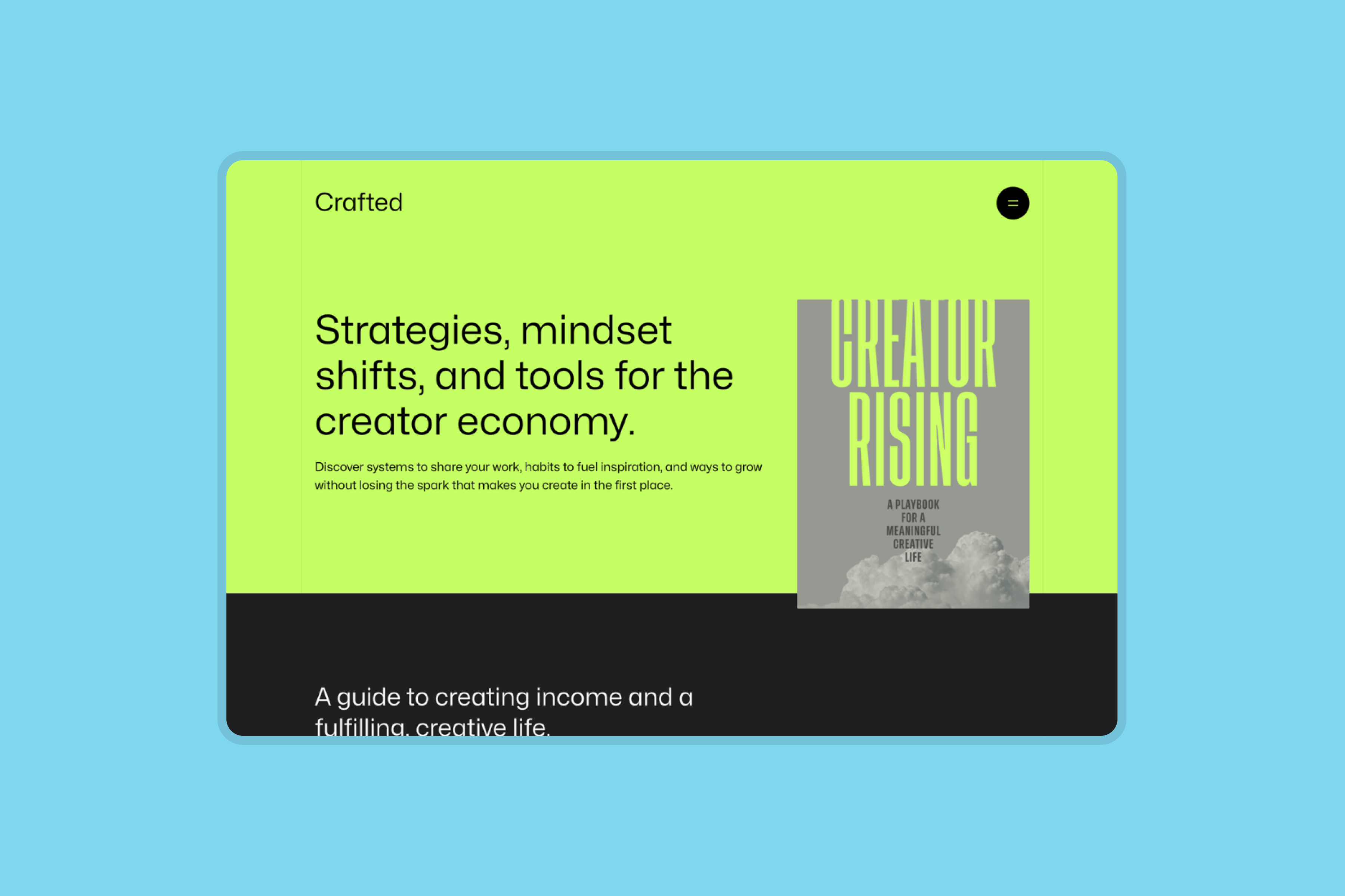 Crafted follows a minimal editorial direction: direct, balanced, and without ornamentation. Its three-column grid brings rhythm and readability, while sober tones are energized by a bright accent color that gives the design a contemporary spark. The layout’s focus is on content clarity and open space, allowing creators to build pages that feel personal yet professional.