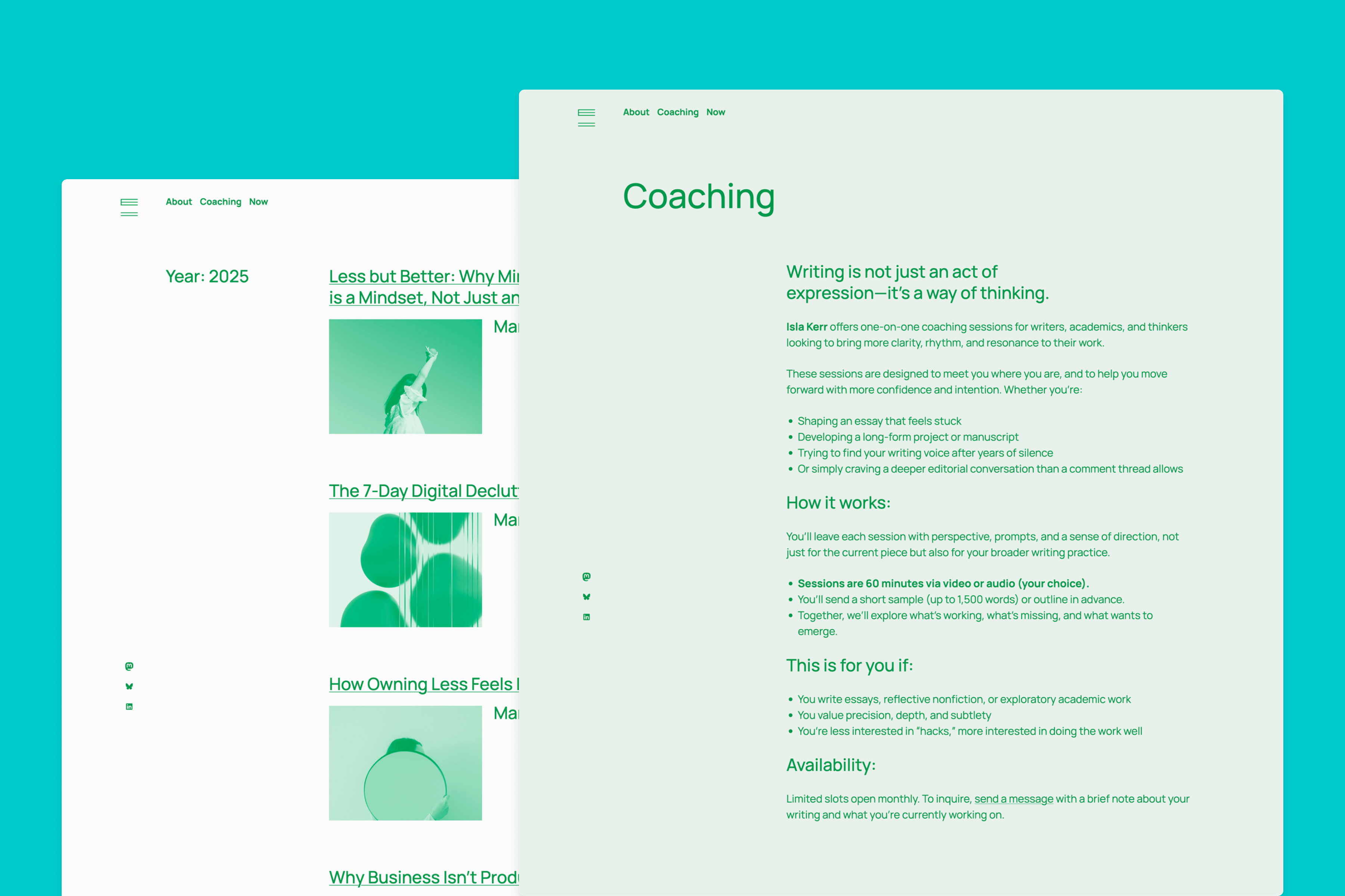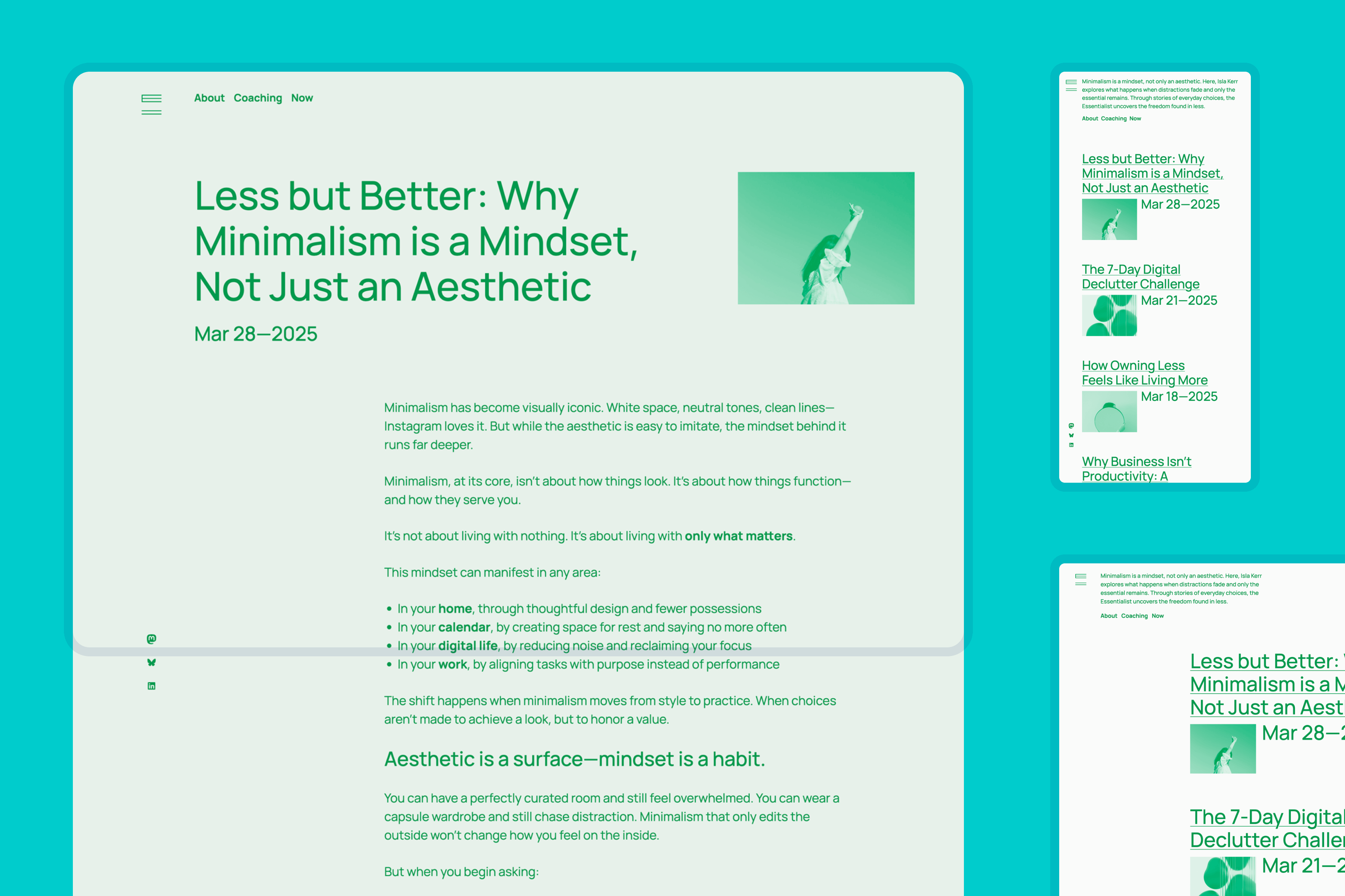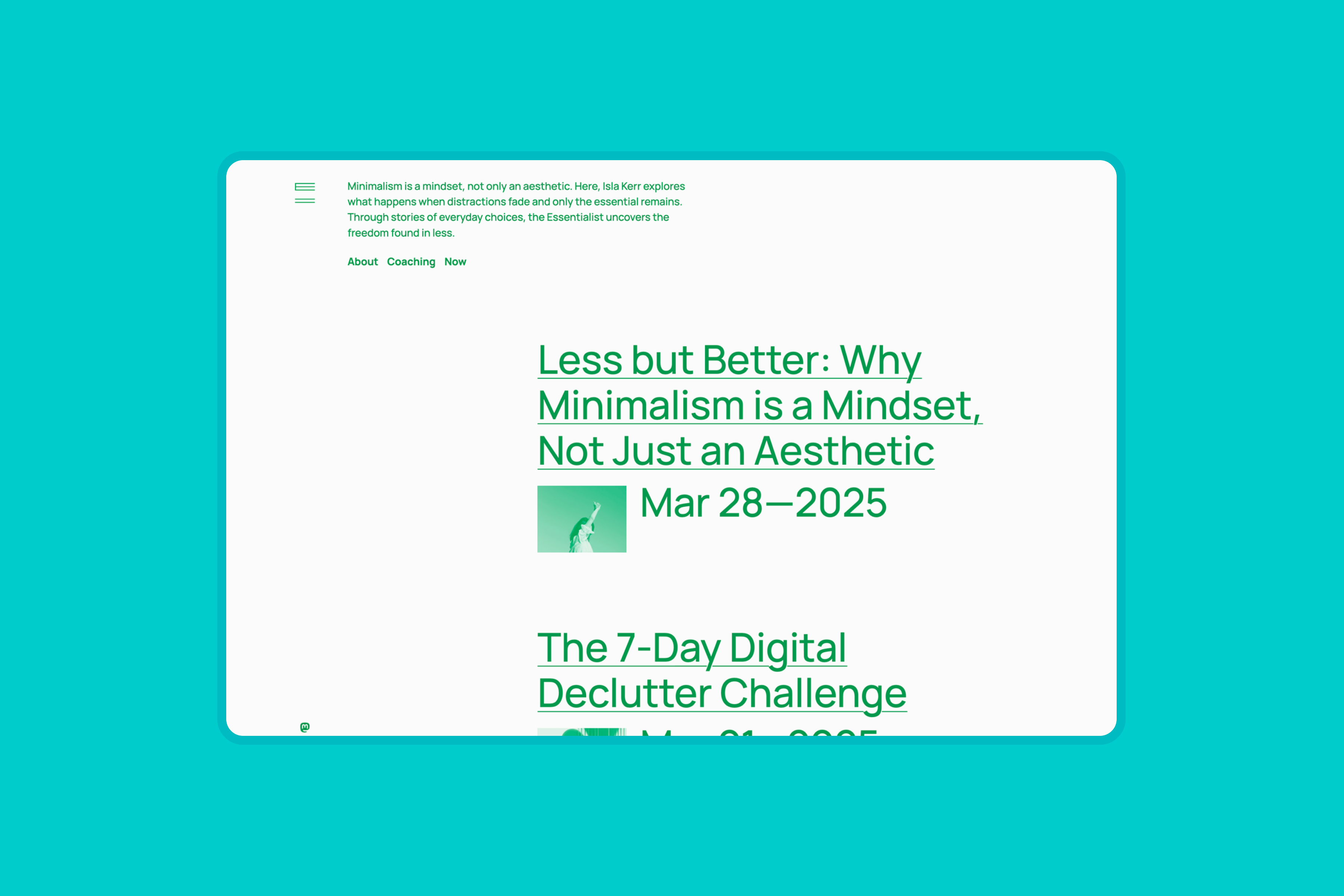 The theme is ideal for anyone seeking a digital space that reflects the value of simplicity, such as minimalist lifestyle bloggers, writers focused on slow content, and creators exploring wellness, sustainability, or personal design philosophies.