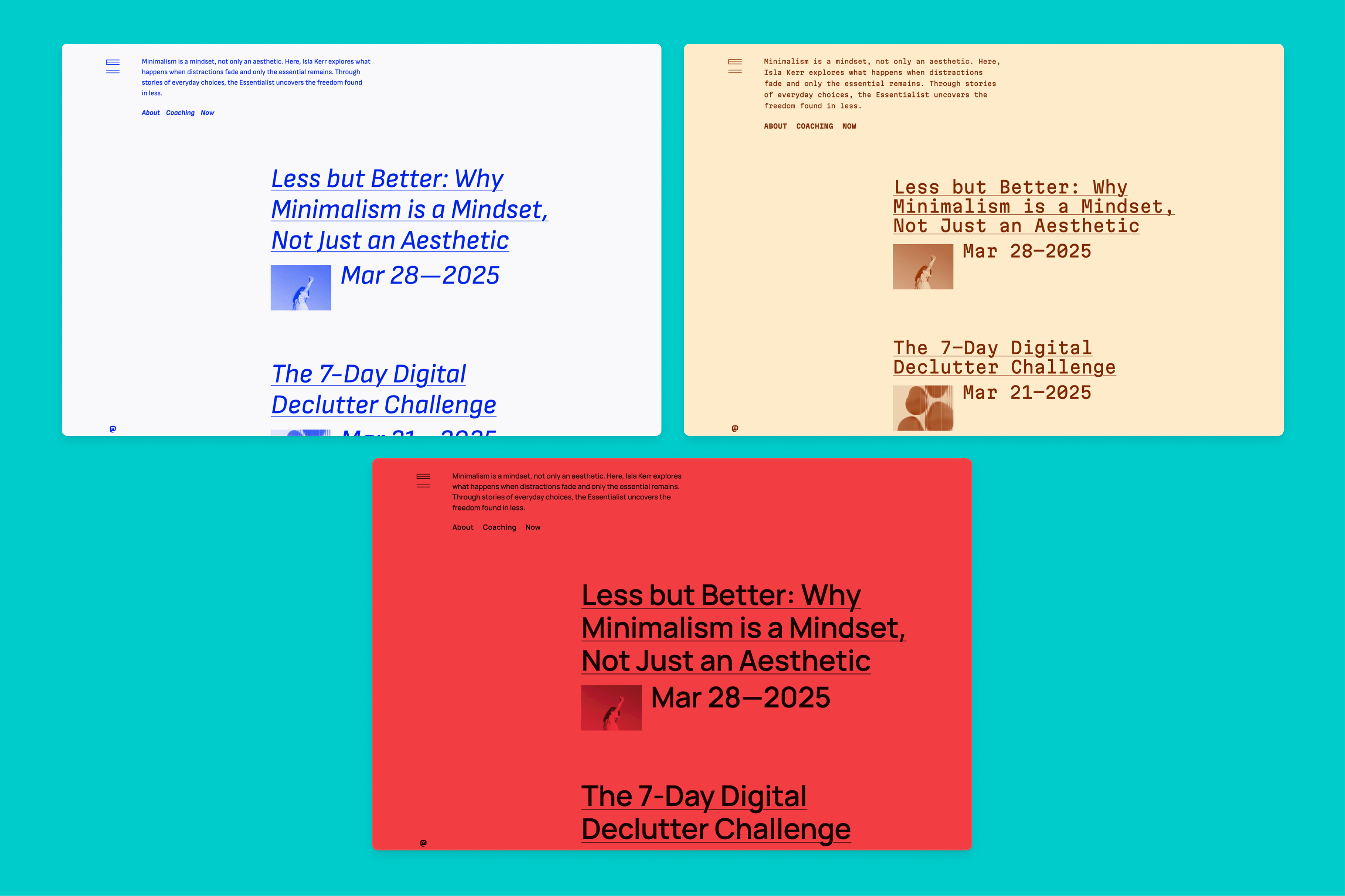 Designed with a flexible modular system, Essentialist adapts seamlessly to different tones through carefully crafted style variations. Each one offers unique color palettes and typographic flavors without compromising the theme’s identity. The grid is subtle, the typography bold yet approachable, and every element is placed with purpose.
