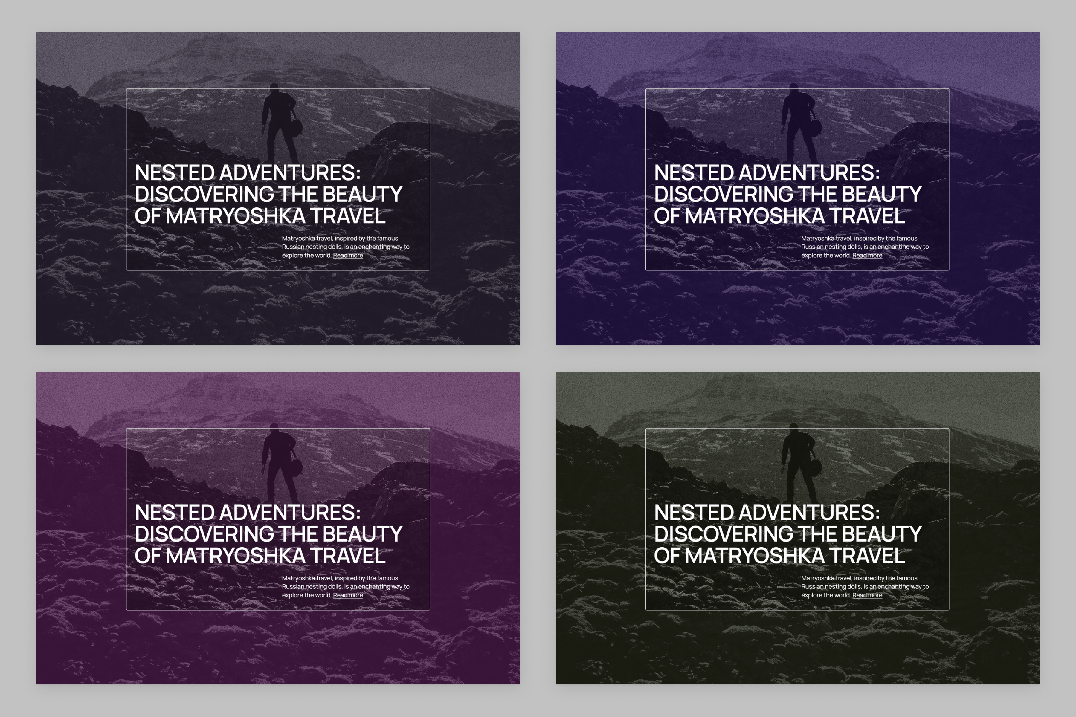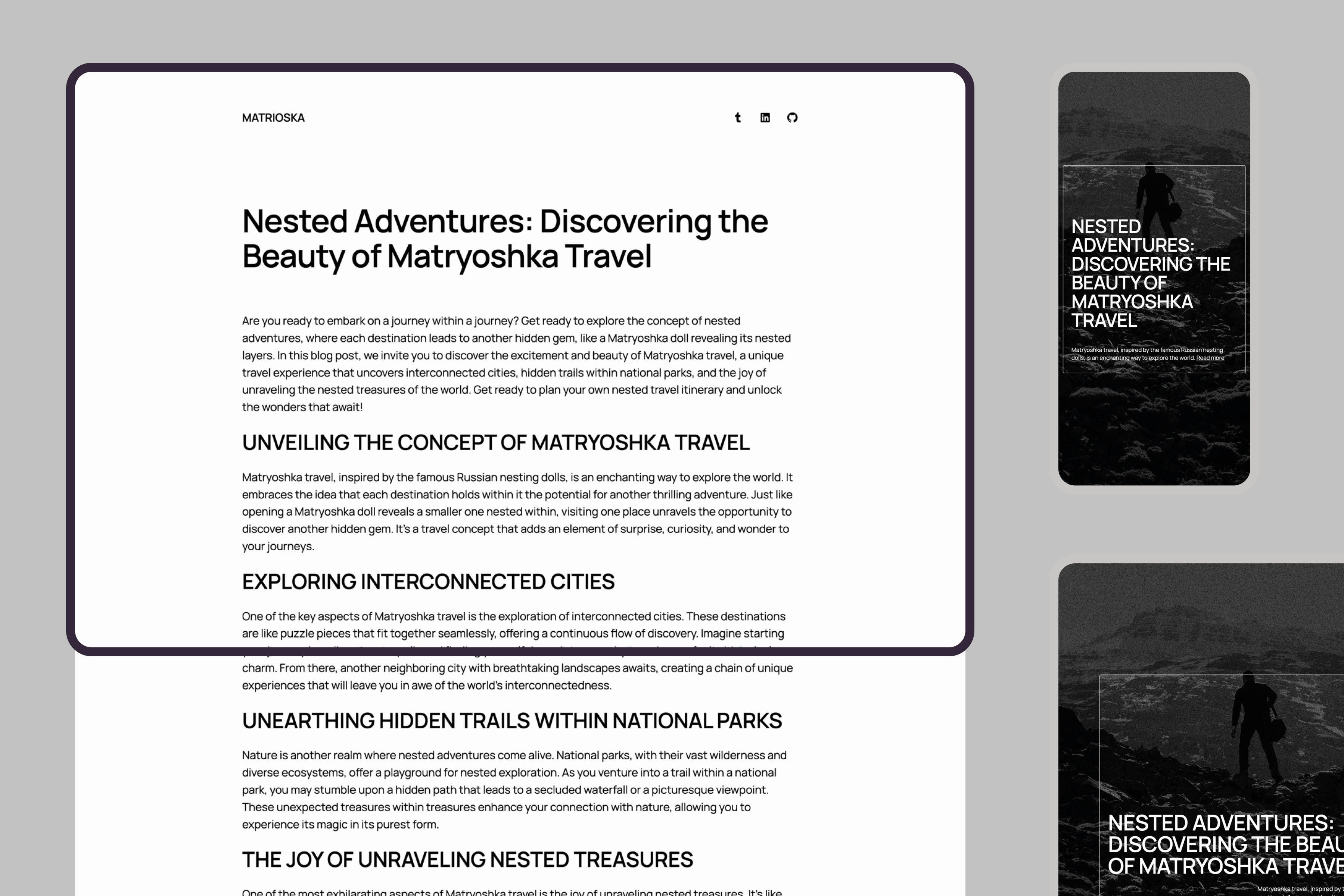 A blog design that displays blog posts overlapping featured images as a Matrioska effect.