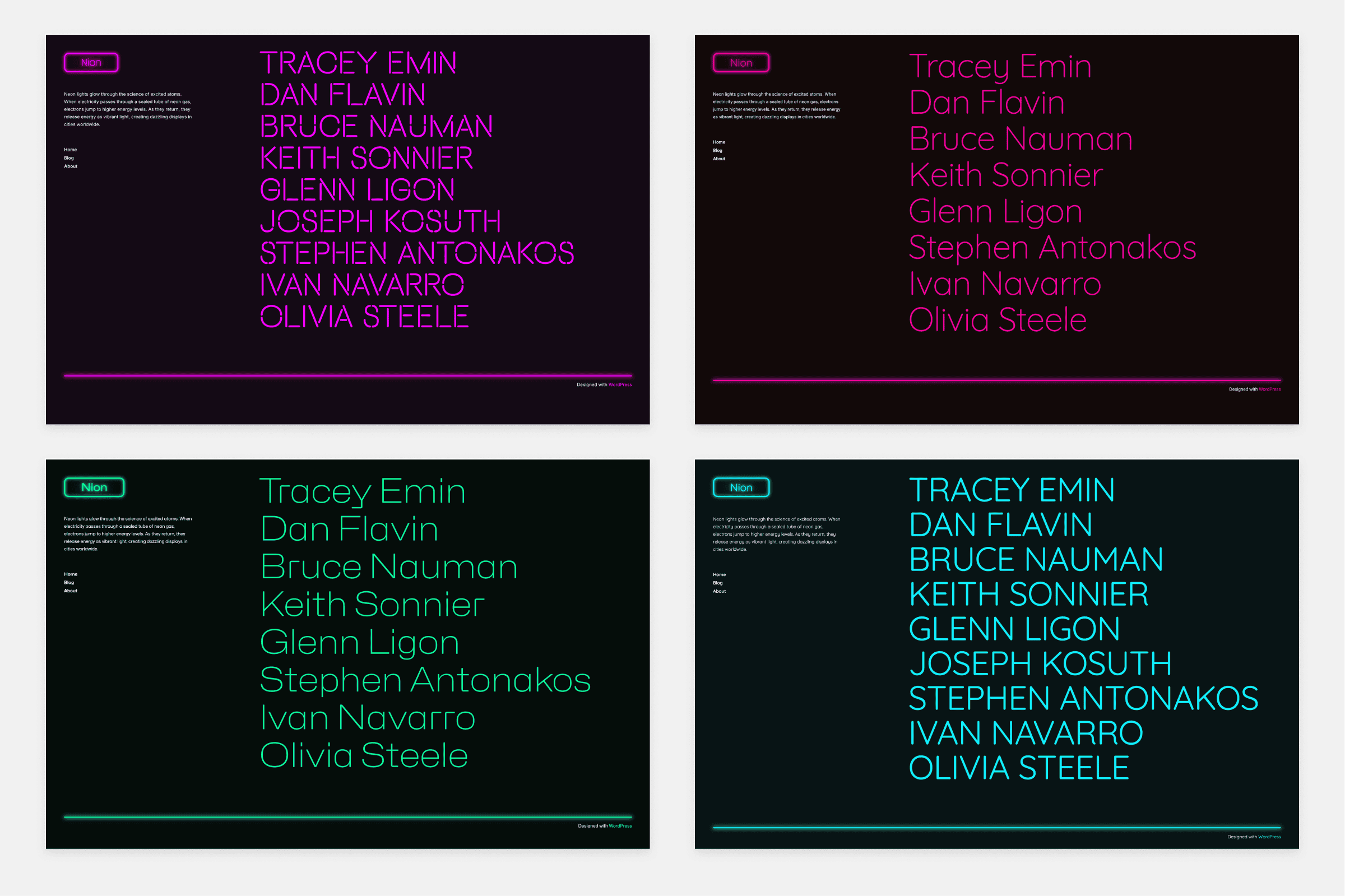 Nion is a theme inspired by the radiant glow of neon signage, infusing your site with the brilliance of electrified gases. Featuring bold typography and vibrant colors, it offers five stunning style variations, each capturing a unique luminous atmosphere.
