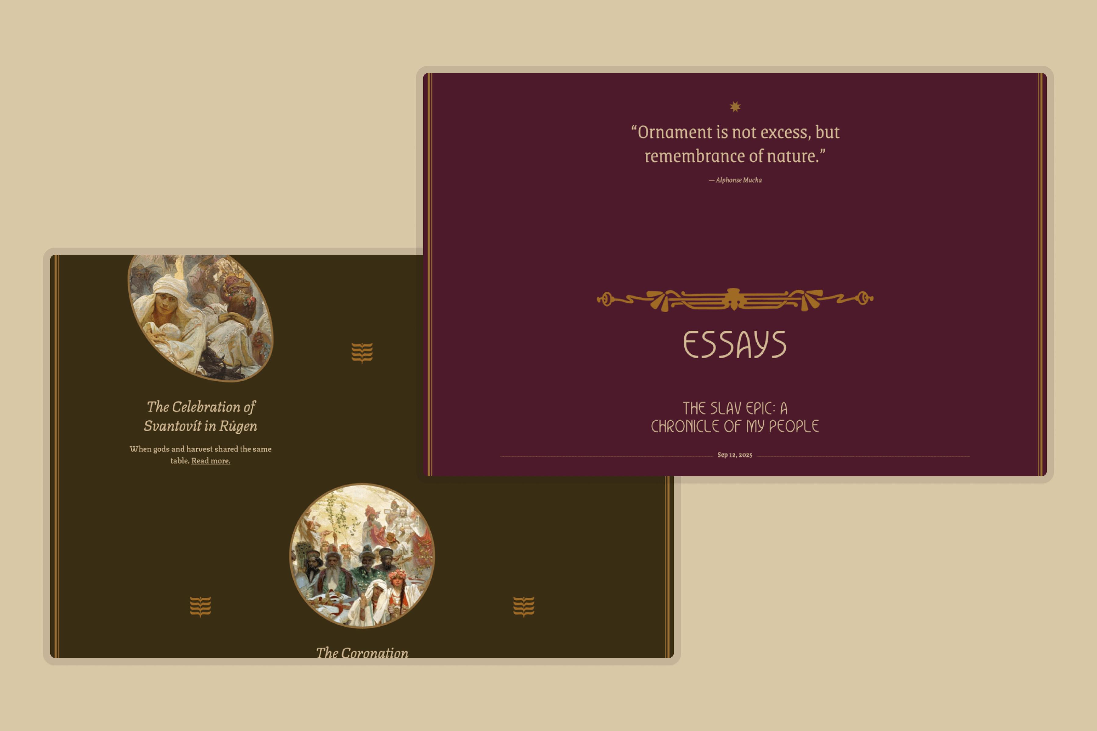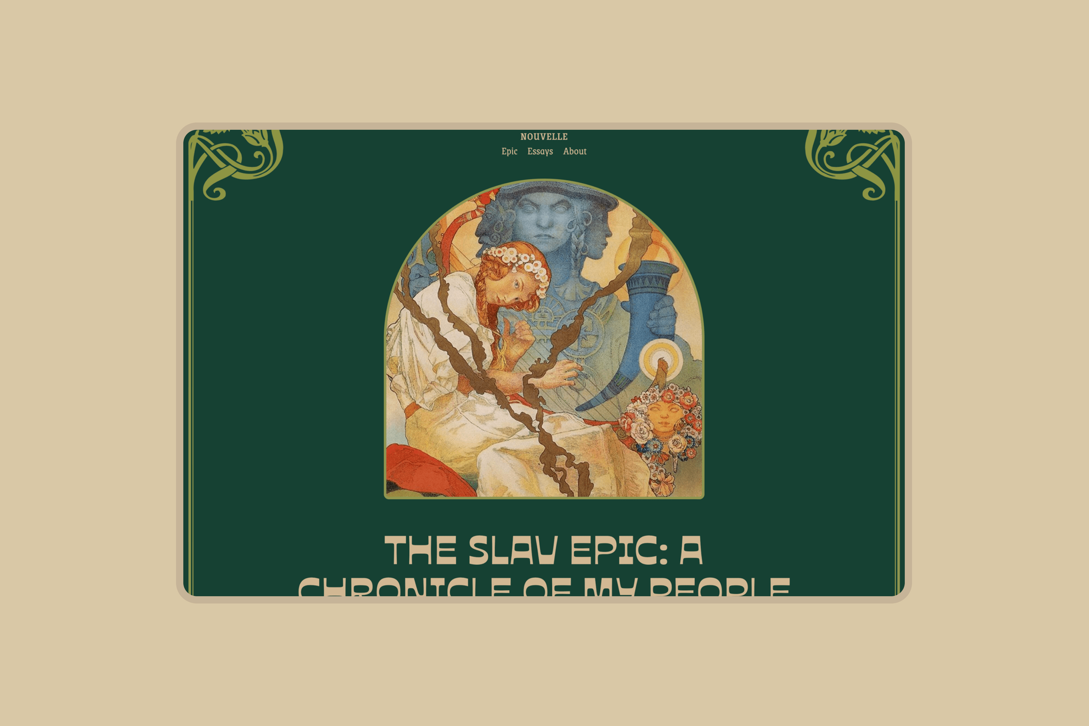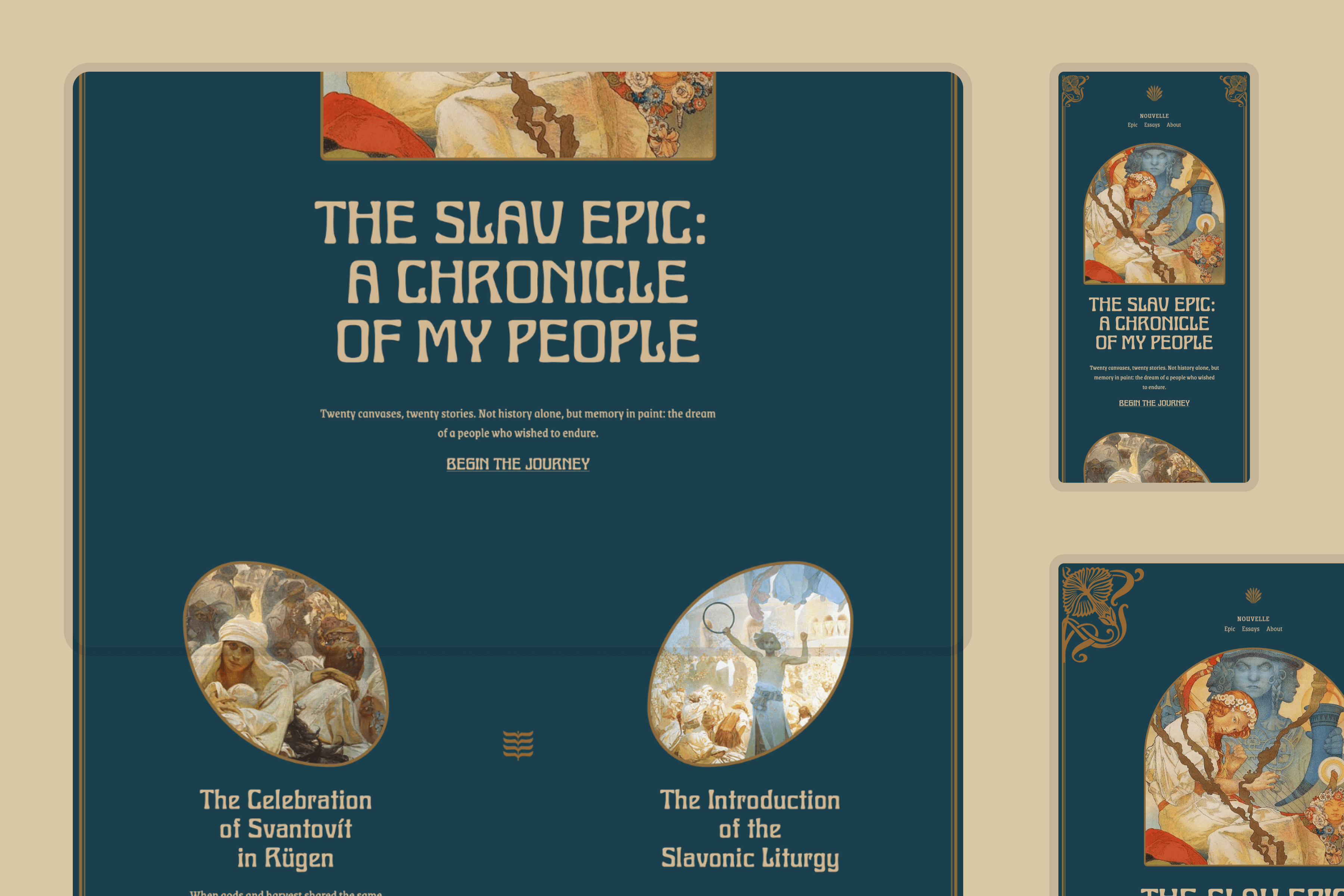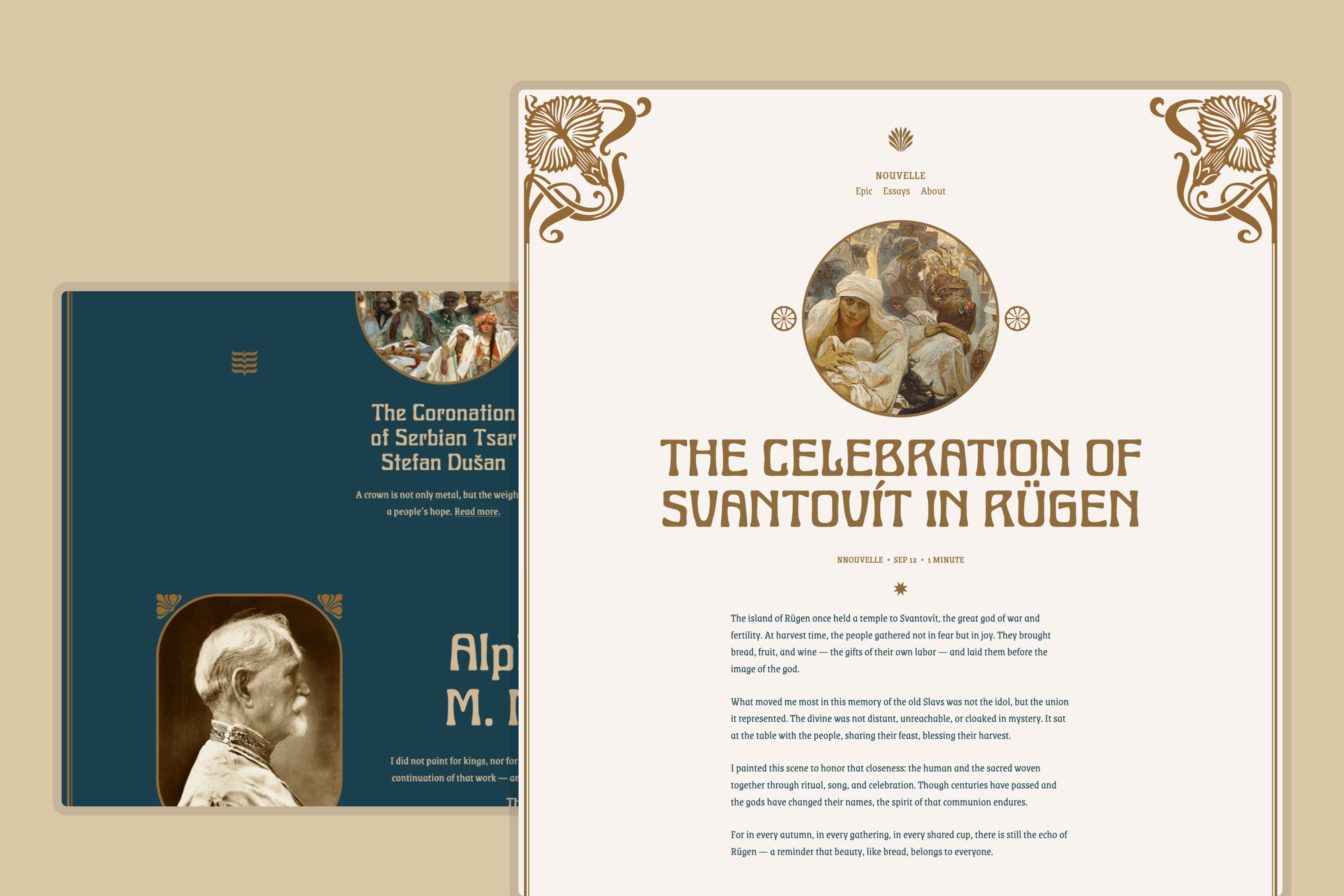 Nouvelle is centered on Alphonse Mucha’s voice, documenting his Slav Epic. Some essays and reflections were also considered to provide a template without a featured image.