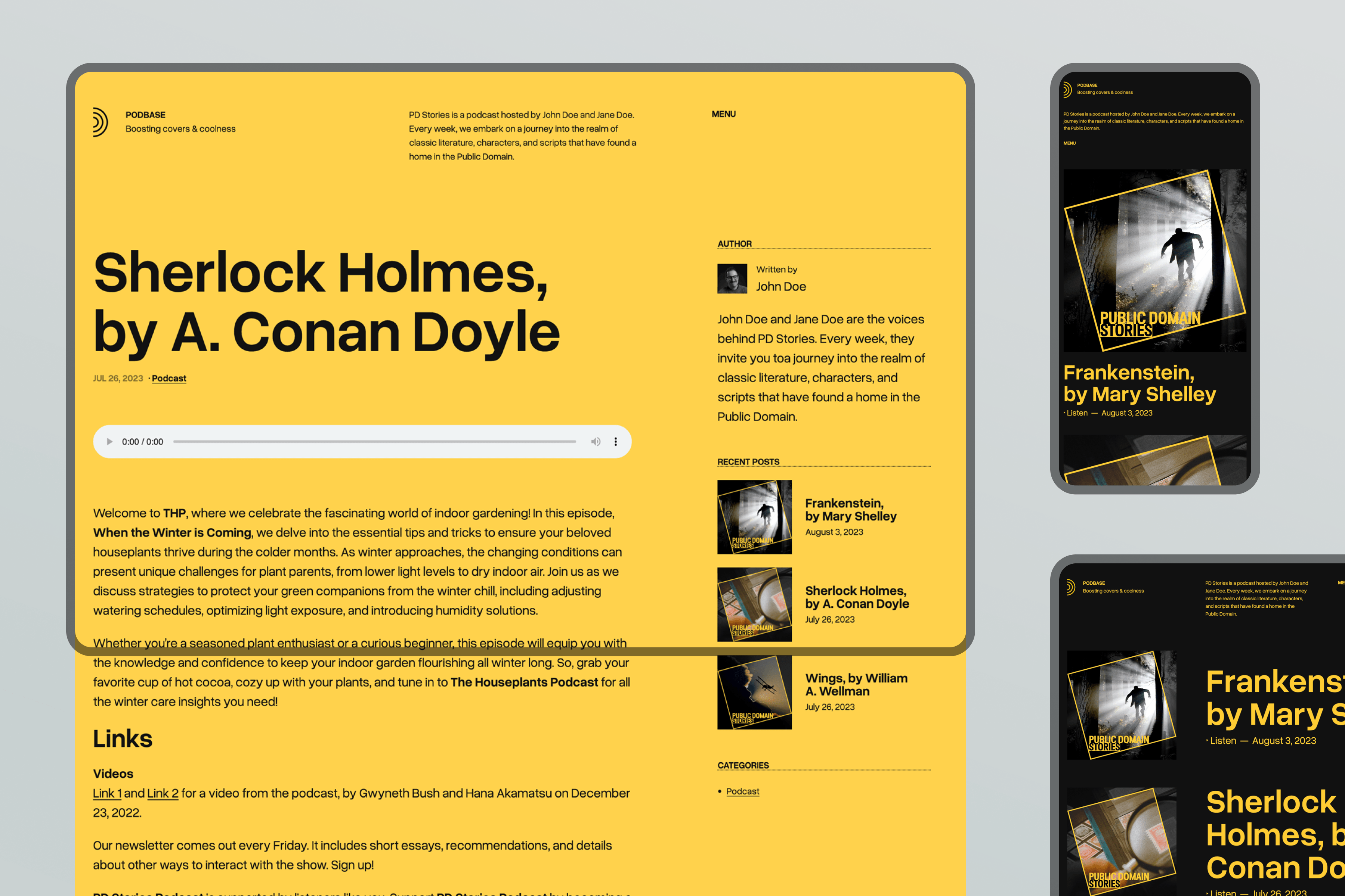 Sometimes, your podcast episode cover arts deserve more attention than regular thumbnails offer. If you think so, PodBase is the design for your podcast site.