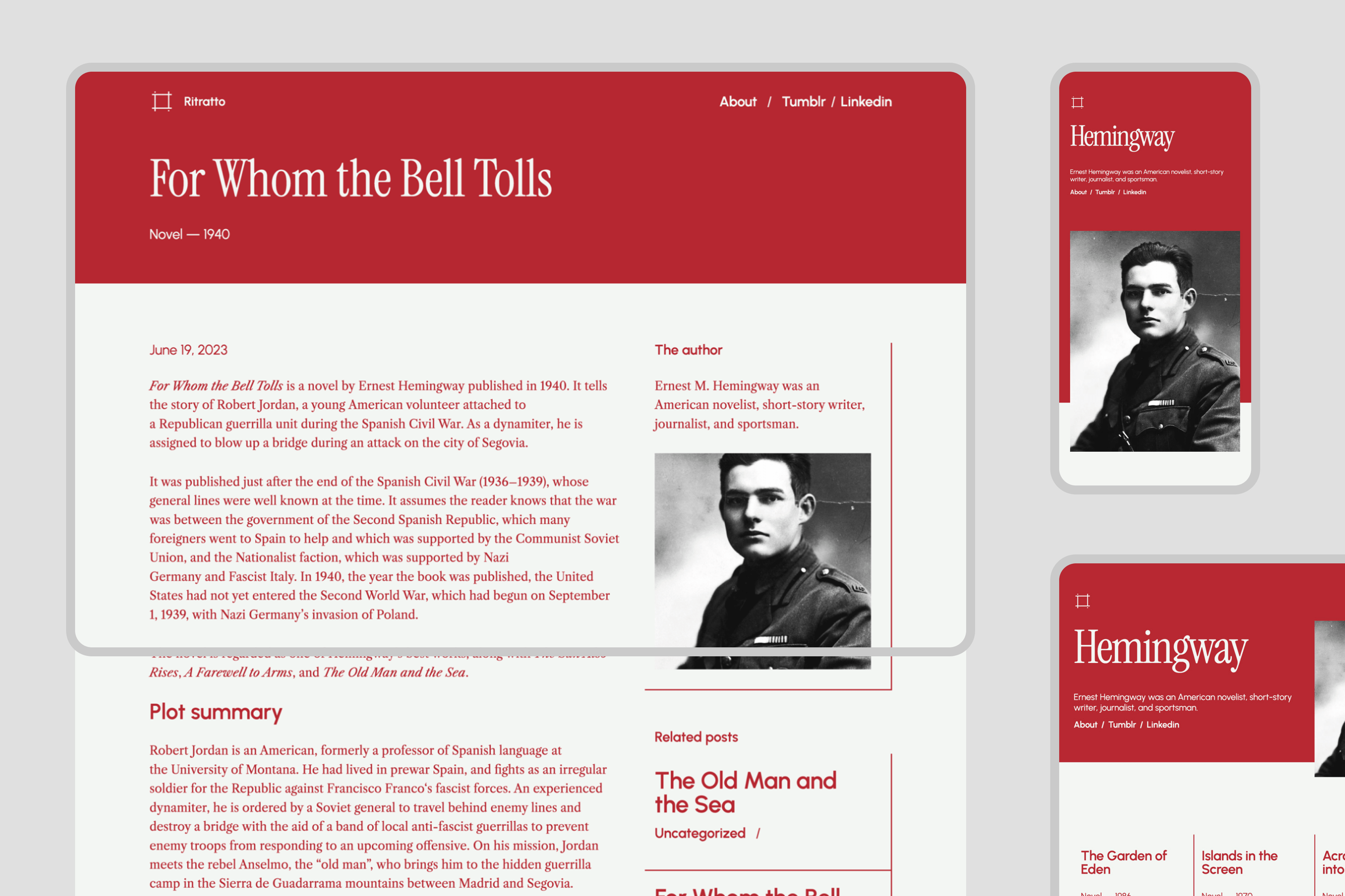 Besides an appreciable snapshot of the author, the theme immediately offers large titles and post meta data displayed on a grid with no Featured Images.