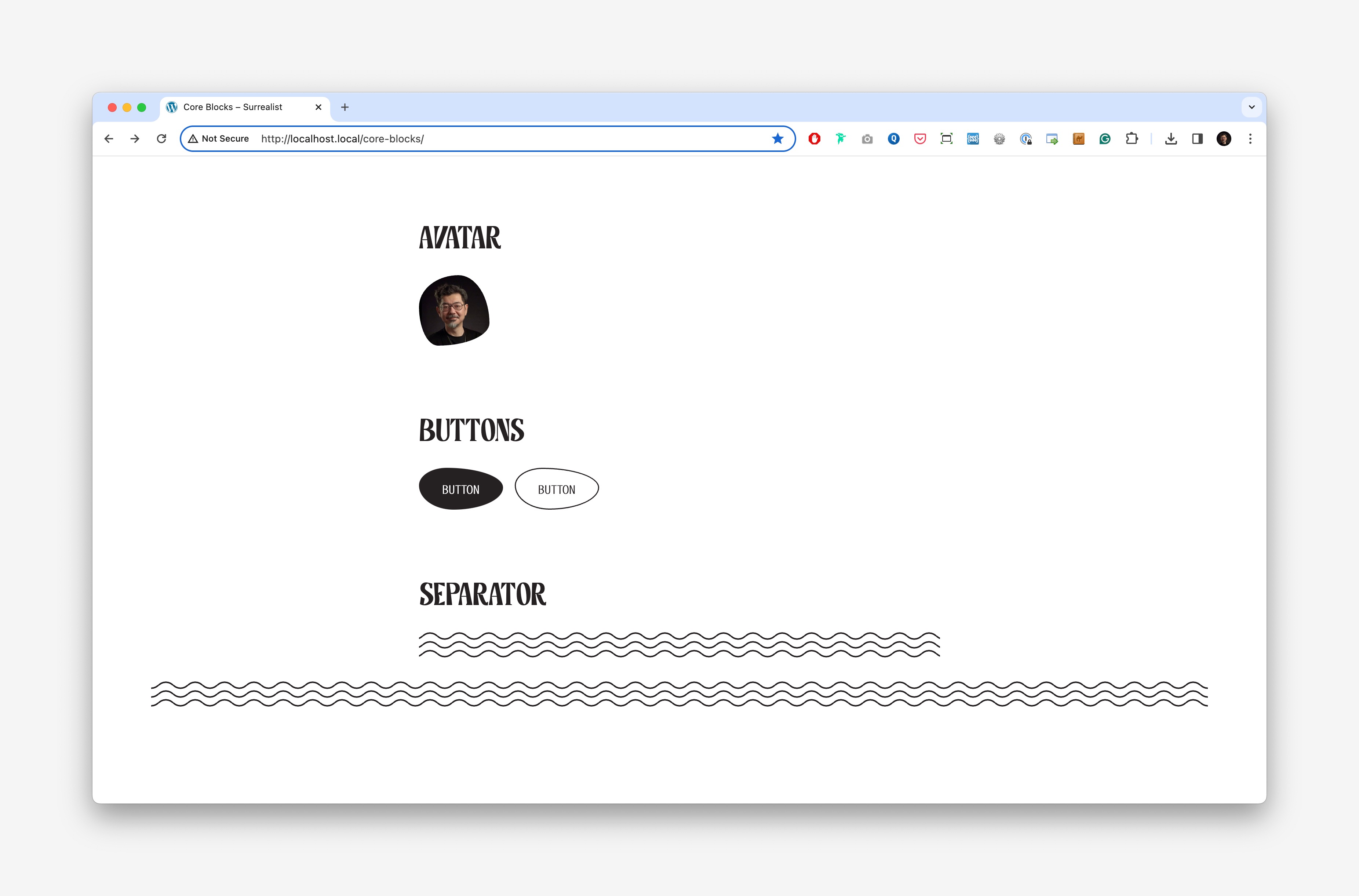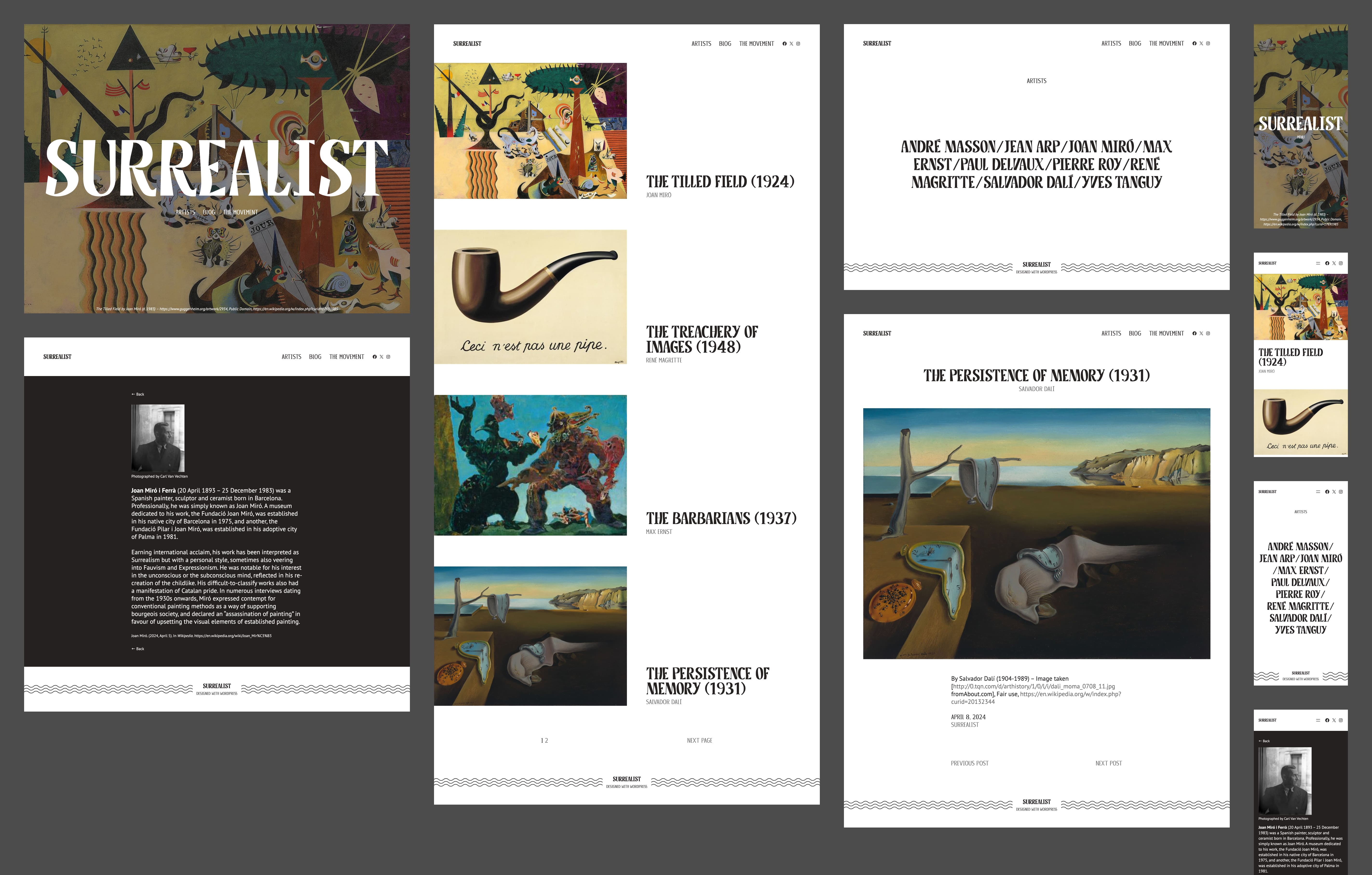 For this theme, we paired PT Sans with Kame, blending traditional clarity with a touch of whimsy – perfect for capturing the essence of Surrealism. The moment you land on the front page, you’re greeted with a boldly sized site title that makes a statement.